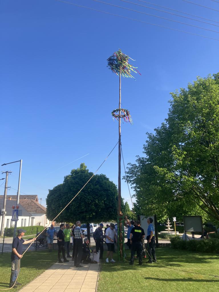 Erb obce je z roku 1614, tvorí ho v modrom štíte na veľkom, hrotom nahor postavenom lemeši čierny vinohradnícky nôž. Symbolizuje roľnícko-vinohradnícku oblasť.